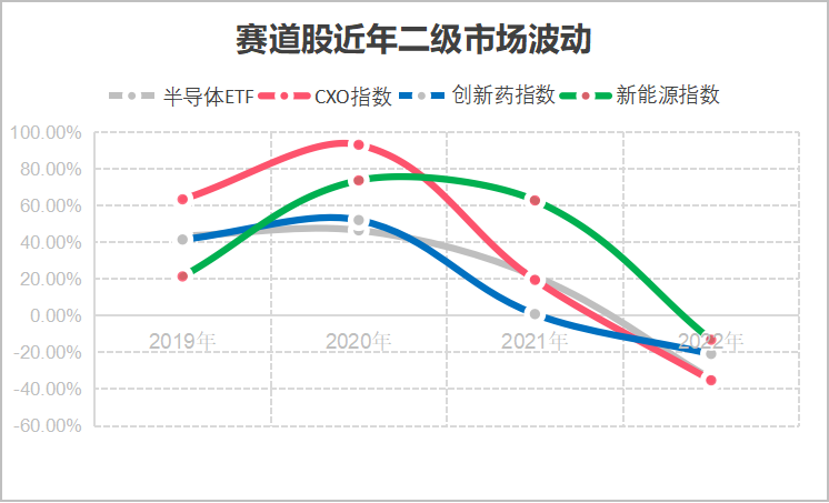 图:赛道股近年二级市场波动,来源:锦缎