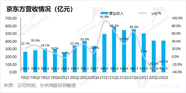 京东方 2022 年第三季度总营收 411.3 亿元,同比下滑 24.7%,低于市场预期(513 亿)。公司营收连续 2 季大幅下滑,主要是因为显示器下游需求疲软,导致产品价格走跌。