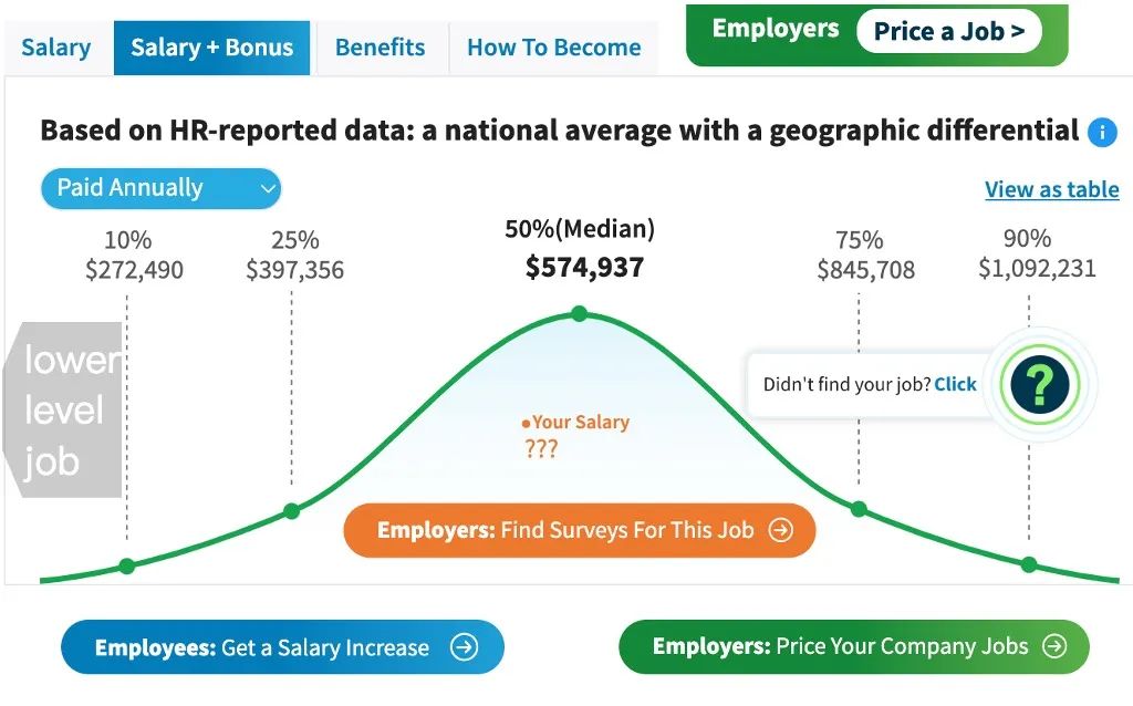 根据 Salary.com的统计 ,截至今年9月美国 CFO 的基本工资中位数为 36.2万美元,而加完奖金和福利的总薪酬中位数达到了50.6万美元。