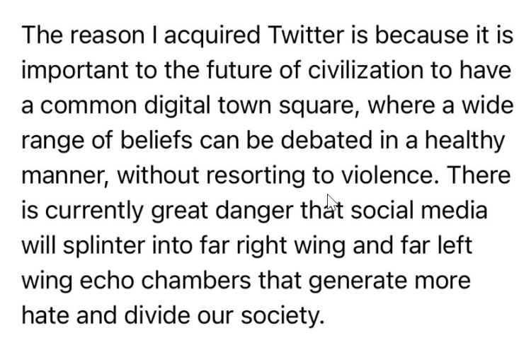 购买推特不是出于商业的考量,而是基于未来数字文明发展与更好的人类文明规范。