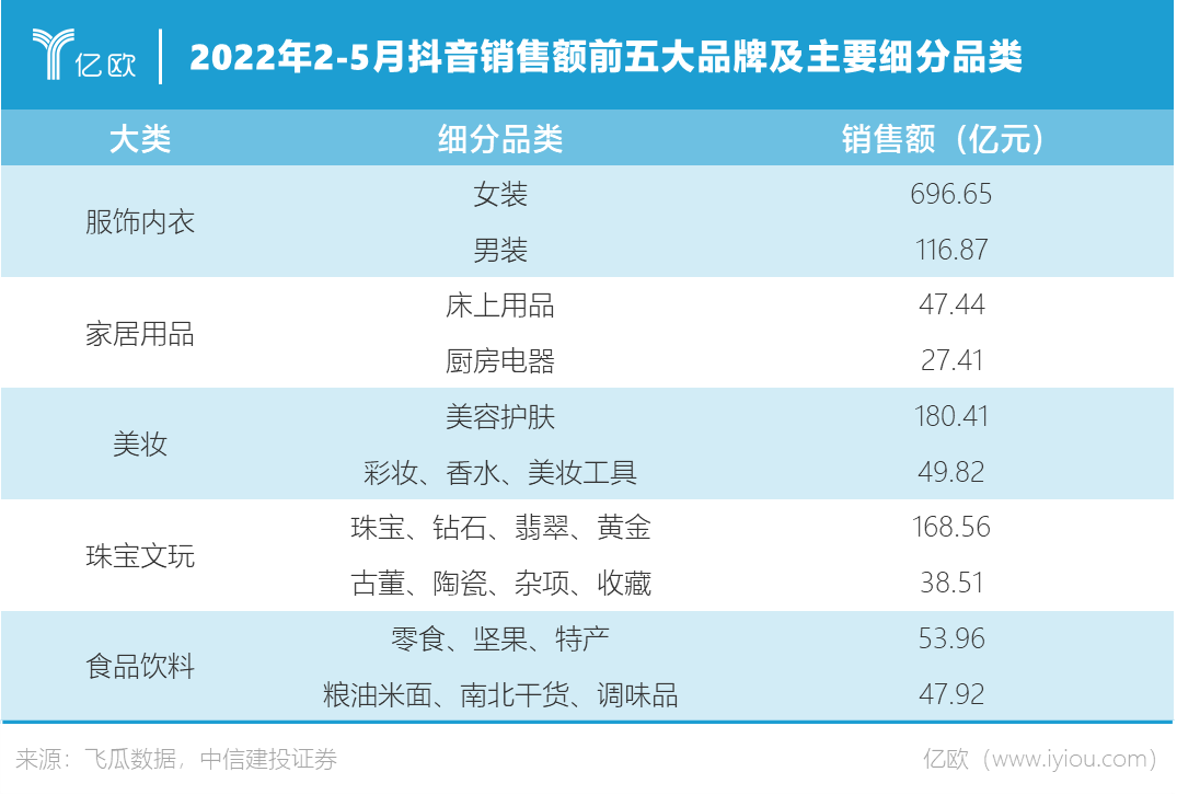 数据显示,服饰内衣、美妆护肤、家居用品,是抖音电商当前卖得最好的品类。
