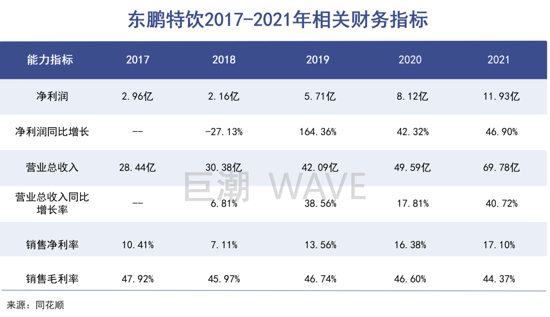 东鹏特饮的进击肉眼可见,2017年底至2021年,四年间营收增长了1.5倍,净利润增长了3倍。可以看出,得益于品牌力的持续提升,公司相关费用的增长有所收敛,净利率已提升至历史最高点。