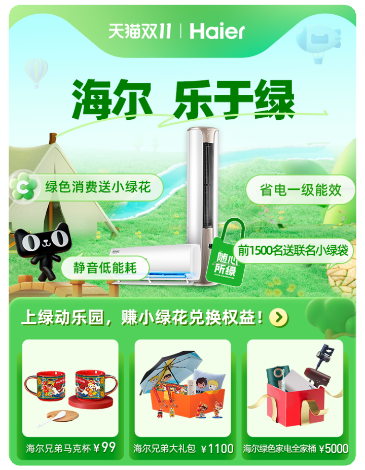 此外,海尔智家将购物与公益结合。在天猫平台,联合天猫定制“超有梗”环保小绿袋,传递绿色低碳生活理念。使得海尔空调获得站内千万级资源曝光,单品单周流量较日常平均上升65%;在京东平台,海尔智家上线“温暖的归途”海洋公益活动,用户参与小程序互动可获取“减碳能量”兑换救助物资,截止到31日21点,已经有38万用户和海尔智家一起守护海豚,守护蔚蓝地球。