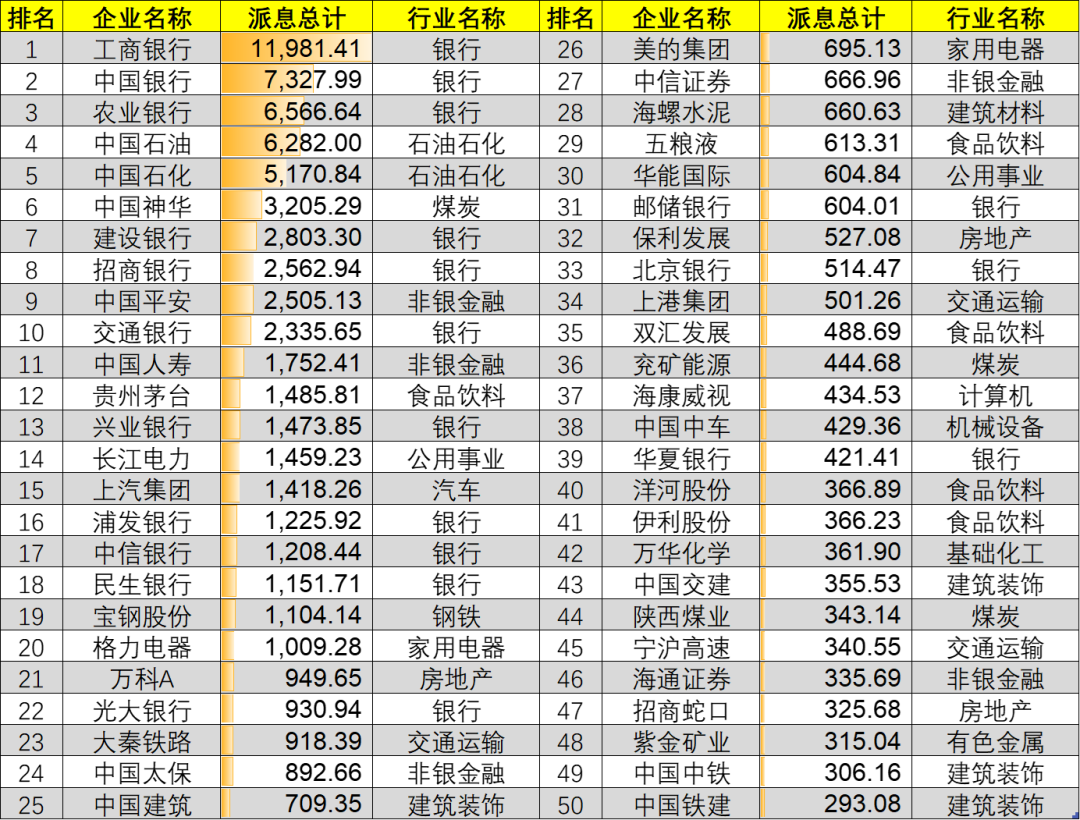 经过多年发展,分红利得理应成为投资选择的重要因素之一。那么咱A股发展了这么多年,到底哪些个股,哪些行业是名副其实的“派息股”呢?|