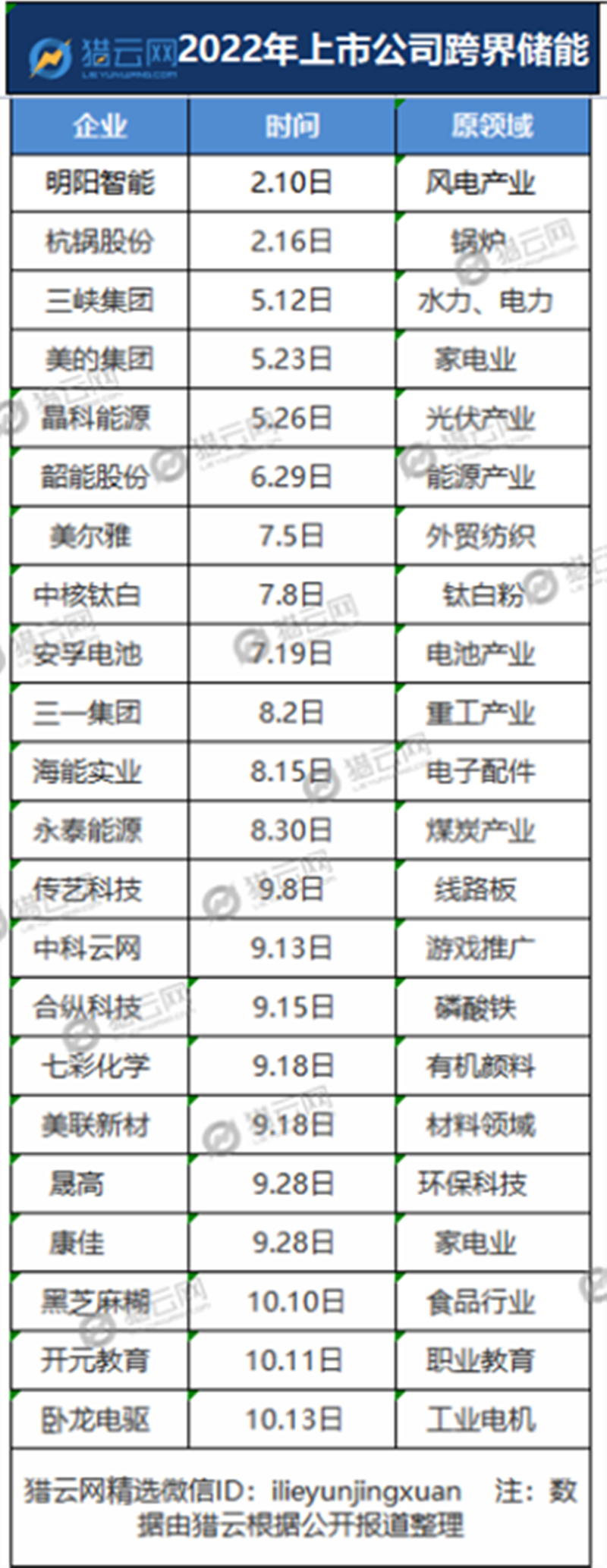 根据资料显示,截至目前今年共有22家上市公司宣布跨界储能。