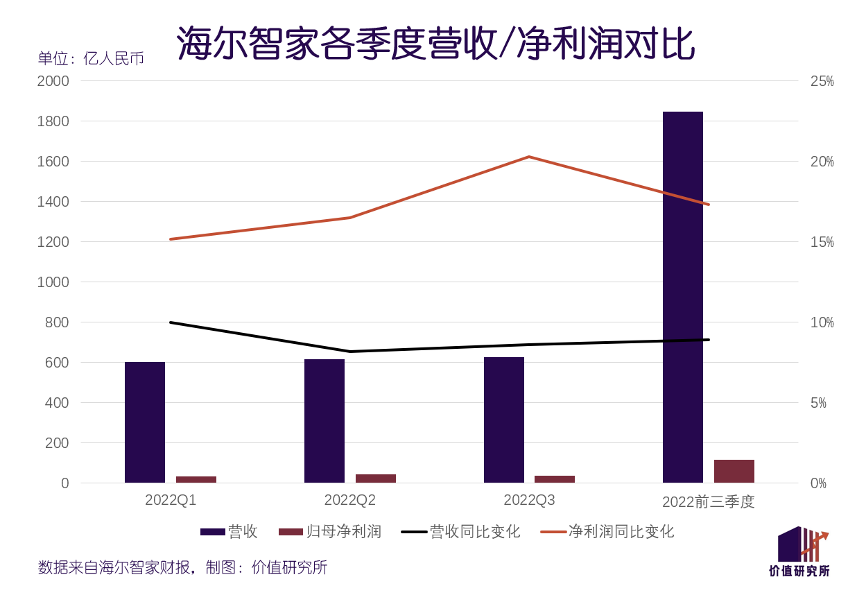 看起来处境最乐观的老二海尔智家,做对了什么?价值研究所(ID:jiazhiyanjiusuo)认为,押宝高端市场和全屋智能家居这招险棋,现在看来是赌对了。