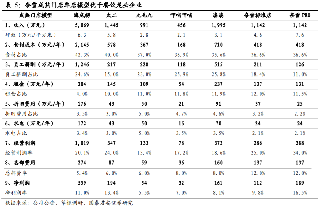 从“大店”走到“小店”,PRO店似乎帮助奈雪找到了“增效和增收”的密码。据国泰君安调研显示,奈雪标准店和PRO店的坪效分别为4.6万元/坪和7.6万元/坪;净利率分别为 9.8%和16.5%,PRO 店的净利率明显更高。
