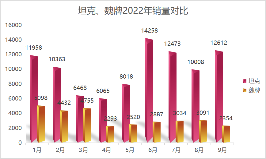截至2022年9月,坦克品牌累计销售达17.4万辆。