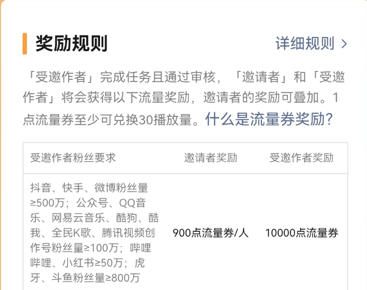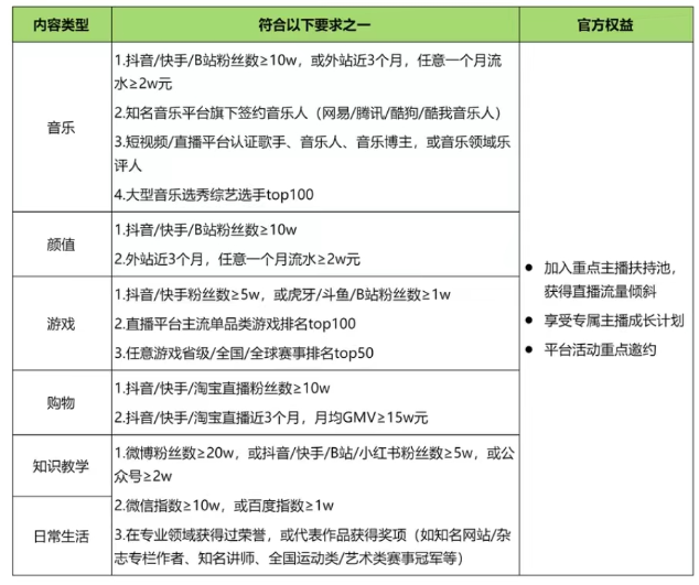 在粉丝要求上,最顶层是500万以上,也就是说,腰部和头部博主享受了同样的流量扶持奖励。