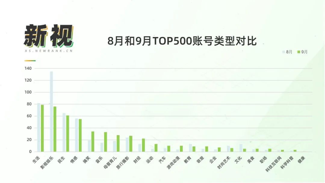 (8月和9月TOP500账号类型对比 图源:新视)