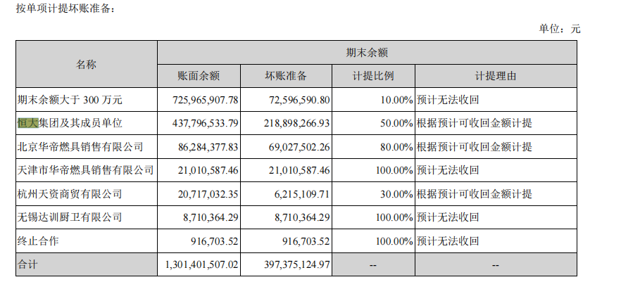 与此同时,华帝股份的应收账款增速明显,公司2019年、2020年的应收账款分别为8.06亿、7.07亿,2021年大幅增加至11.8亿,同比增加66.9%,主要系部分应收票据到期未兑付转应收账款所致;2022年上半年应收账款增至14.12亿。此外,华帝股份的坏账准备也在大幅度增加,2021年公司的坏账准备为4.43亿元,同比增加130.73%,2022年上半年增至4.84亿。