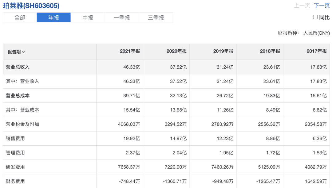 同时,这也让前些年珀莱雅一直都被打上轻研发重营销的标签。面对不断的质疑,珀莱雅似乎也想做出证明加大研发投入。