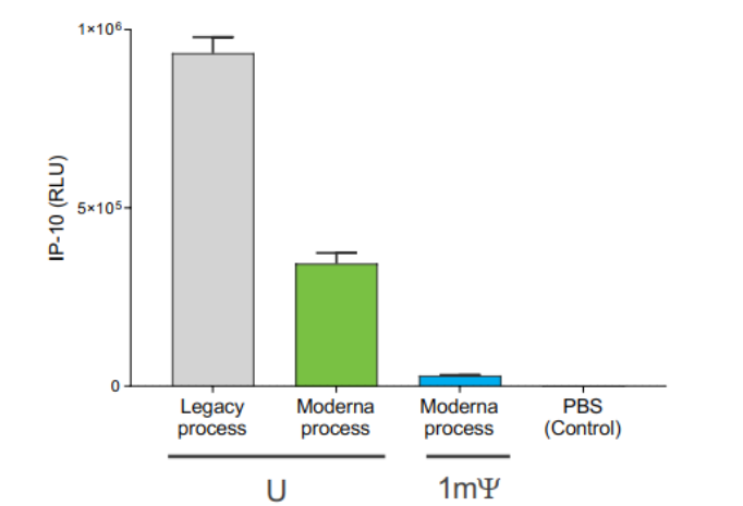这项惊人的发现在2005年被发表在《免疫》杂志上,通过将尿苷替换成假尿苷,不仅能够有效降低免疫原性,而且还能增强mRNA的翻译效率。