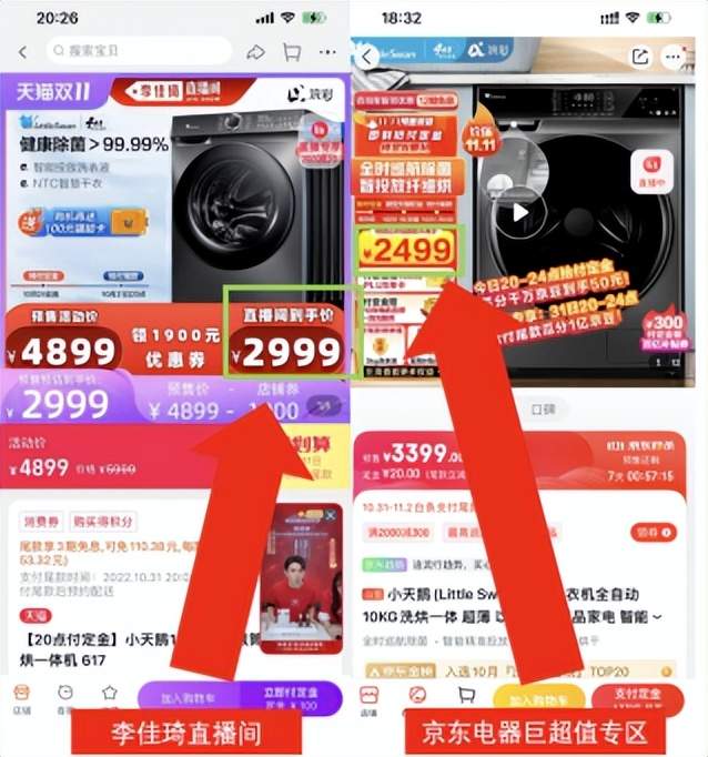 今年的“双十一”大促,有的品牌已经开始不愿被一个直播间绑架定价。10月24日活动开始当天,就有消费者对比后发现部分家电在京东购买的价格要低于李佳琦直播间的到手价,其中小天鹅10公斤家用滚筒洗烘一体机的差价达500元。