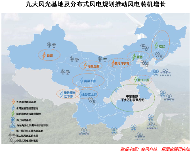 而长期来看,根据能源局、发改委印发的《以沙漠、戈壁、荒漠地区为重点的大型风电光伏基地规划布局方案》,第二批风光大基地在“十四五”时期规划建设装机量为200GW,“十五五”时期规划建设装机量为255GW,合计455GW。再加上千乡万村驭风行动带来的分布式风电装机,将有力的支撑风电装机量长期内较快速的增长,进而带动整个行业的上行。
