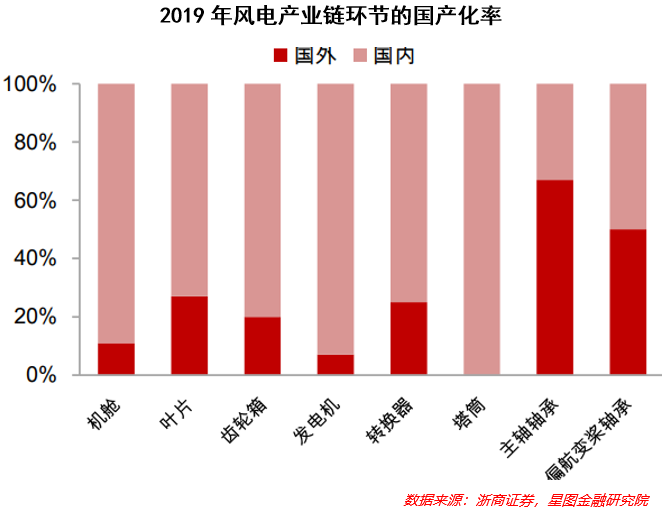最后是技术进步带来的行业效率提升及国产替代机会。对于新能源而言,无论是光伏、风电,还是其它可再生能源发电方式,能否实现平价替代传统能源,是衡量其长期发展的重要因素之一。对于风电而言,目前已经实现了平价上网,但在很多关键环节,仍然存在“卡脖子”的技术,国产化率较低。在逐渐国产化的趋势下,必然存在较大的国产化率提升空间。
