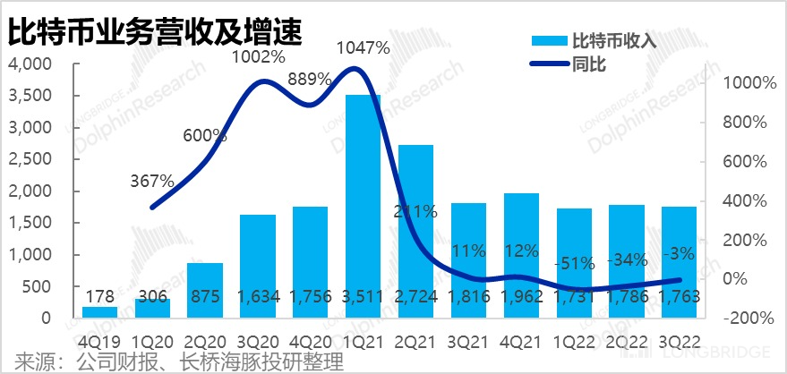 3、比特币业务虽然营收规模巨大,但毛利很薄。本季实现毛利润 0.37 亿,环比上季度小幅缩窄,比市场预期略低。但绝对值小,对整体业绩基本无影响。