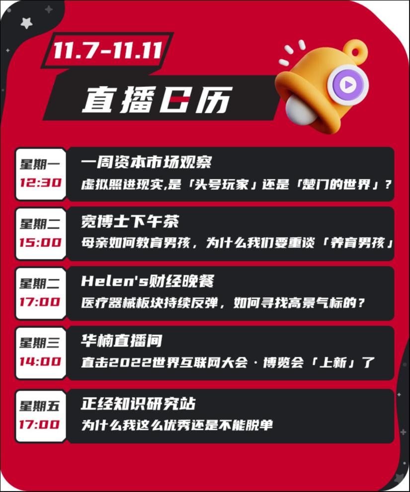 快来看看11月7日到11月11日这一周,钛媒体有什么精彩原创直播吧!