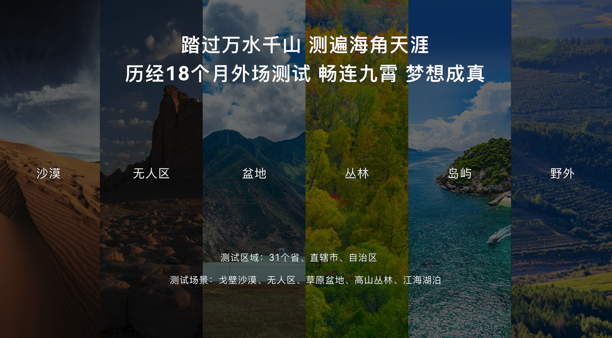 随着第一条北斗短消息从样机成功送出,新的挑战紧随其后——为确保手机终端在任何地域、环境和极端气候下都能接收到卫星消息,测试团队又开始一场长途跋涉。他们跨过31个省份、直辖市、自治区,北到榆林沙漠,南至海南诸岛,东抵东海之滨,西达羌塘草原,历时18个月,场外测试场景覆盖了祖国戈壁沙漠、高山丛林、江海湖泊等各式地貌环境。