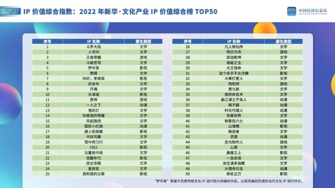 《新华文化产业IP指数报告(2022)》梳理了近年来的影视剧和动画作品,总结得出:头部IP改编成功率更高。
