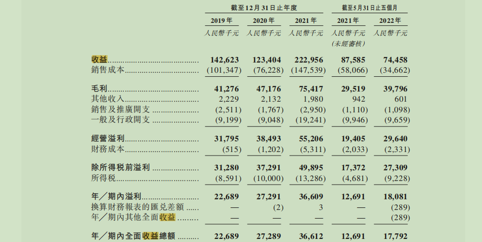 钛媒体APP注意到,乓乓响今年前五个月的净利润大幅增加,离不开毛利率水平的提高。据招股书,2019年-2021年以及截至2022年5月,乓乓响的毛利率分别为28.9%、38.2%、33.8%、53.4%。
