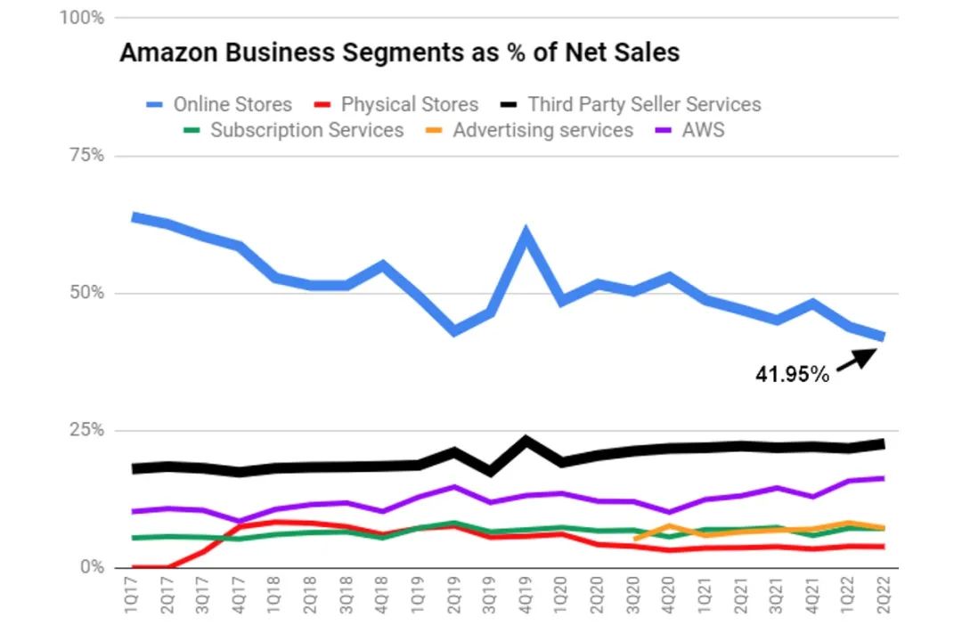 如果说从去年到今年一季度,亚马逊还可以说是因为疫情、供应链等问题导致了电商的疲软,但今年以来,亚马逊的电商板块已经连续三个季度交出了让人失望的成绩单,甚至滑坡的幅度还有不断增大的趋势。
