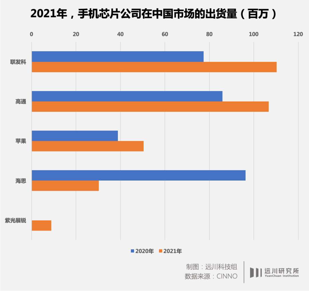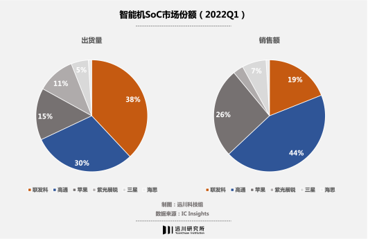 但随后,被三星坑哭了的高通转投台积电,推出了同样采用台积电4nm的8+gen1,同期,大陆手机芯片厂紫光展锐去年增长迅速,开始在低端市场开始,蚕食联发科的份额。