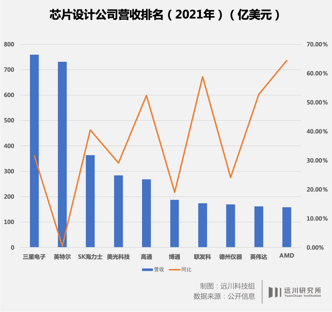 依靠中国市场中低端机型庞大的出货量,联发科也成为了全球规模最大的手机芯片厂,按照营收计算,它甚至超过英伟达和AMD,是全球第七大芯片设计公司。