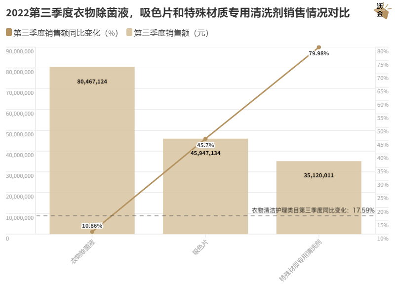 专业清洗剂的增长快于吸色片,这两者都与“便利程度”有关,但消费者在面对“节省时间”和“避免损失”时会优先选择止损。吸色片可以节省消费者步骤和时间;专业清洗剂虽然增加了工作步骤,但减少了潜在损失。
