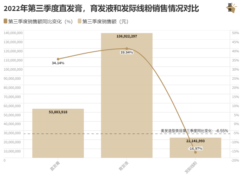 直发膏、育发液的销量持续增长,而发际线粉的销售额却显著下降,这是由于三者都与“周期性选择”相关,而消费者对于他人能直观感受到区别的外显性品类,会优先选择长期的实质性解决方案。
