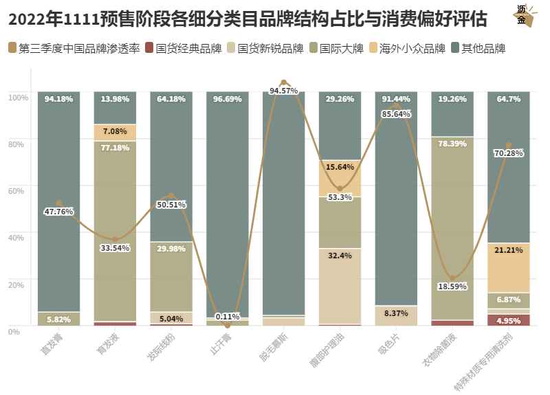 双11预售阶段各细分类目TOP品牌市场对比表现