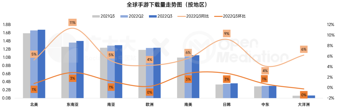 本文分别展示北美、东南亚和日韩市场在2022年Q3的部分手游营销表现。