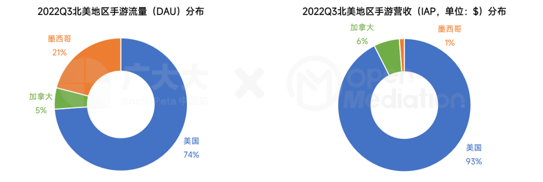 在自身广告主以及广告素材缩减的情况下,Casino给开发者带来的收益却显著提升,说明Casino产品自身的变现能力相对稳固,开发者需注意中长期用户价值的培育和挖掘。另外,北美是一个兼具成熟市场和蓝海市场的区域。美国市场的竞争对于新晋开发者来说或许过于激烈,开发者可以关注墨西哥市场,后者具备一定的流量优势(DAU占北美整体的21%),尚未进入爆发性增长状态。