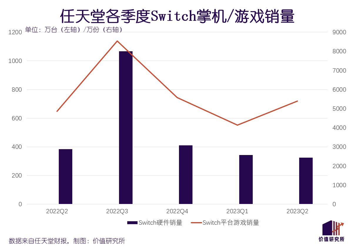 和连续下滑的Switch硬件相比,游戏销量尚算符合预期。数据显示,截至今年9月底,Switch平台游戏累计销量为9.18亿份。其中,Q1-Q2报告期内共售出9541万份,同比增长1.6%。