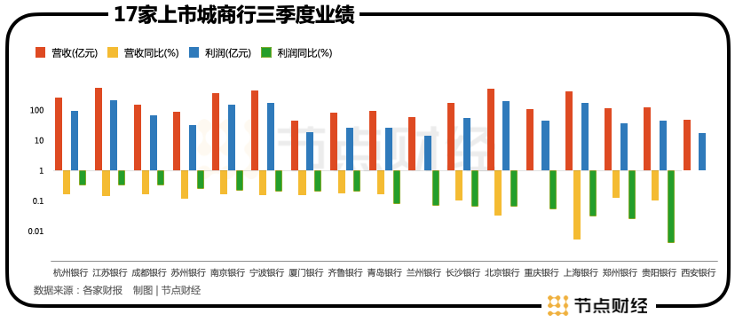 例如城商行中的老大哥北京银行,似乎就有自驱乏力的苦恼。其三季报营收增长3%,净利增长6.5%,在城商行中居于倒数,净息差也在收窄。
