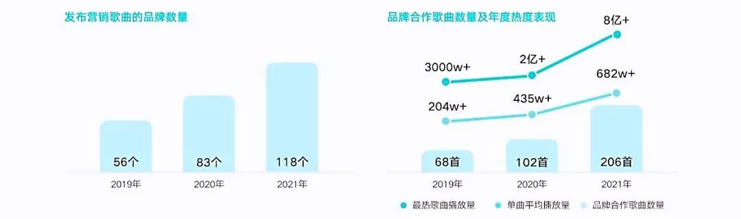 根据去年发布的《华语数字音乐年度白皮书》显示,2021年共有118个品牌推出音乐营销,共发布206首歌曲,连续两年大幅增长,但彻底出圈的也仅有屈臣氏、蜜雪冰城这两大广告歌。