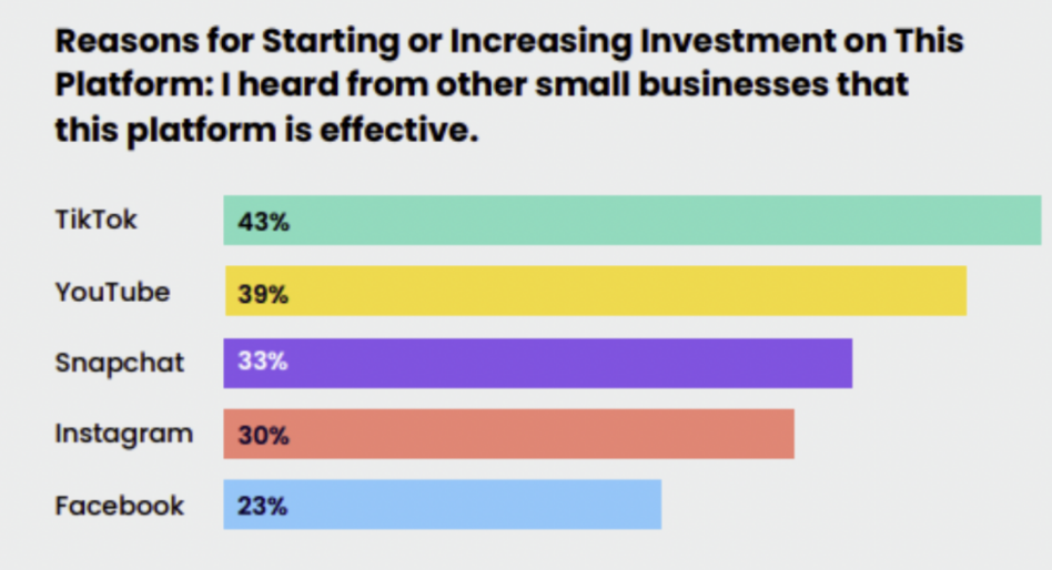 根据调研机构Hello Alice一项针对全球7000多家中小企业的调查,43%的企业考虑加入Tik Tok的阵营,另有78%已经在Tik Tok投放广告的企业表示有意增加投入。对比之下,只有30%和23%的中小企业有意加入Meta旗下的Instagram和Facebook。