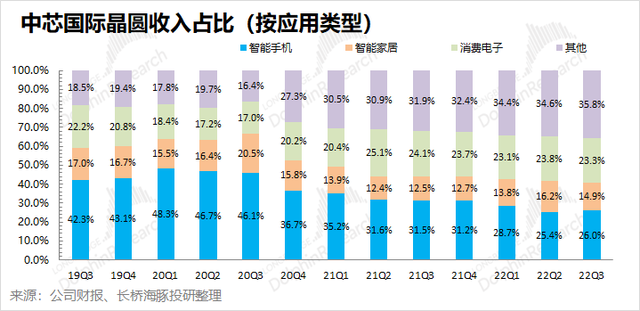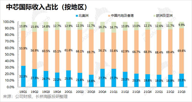 另外在中芯的这份财报中,我们也能看到①智能家居和消费电子(手表、耳机等)业务开始下滑,下游需求可能出现恶化;②智能手机业务从过去几季的下滑中出现了稳住的迹象;③内地和香港客户的占比仍在持续上升。