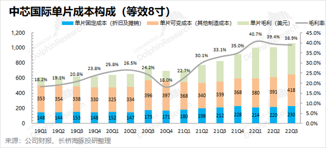2)单片固定成本(折旧及摊销):本季单片固定成本(等效8寸)为230美元,环比增长10美元/片。