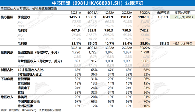 1、整体业绩vs市场预期:中芯国际的三大核心指标,收入、毛利率和产能利用率,在半导体开启周期下行的时候,公司是否有超预期表现?