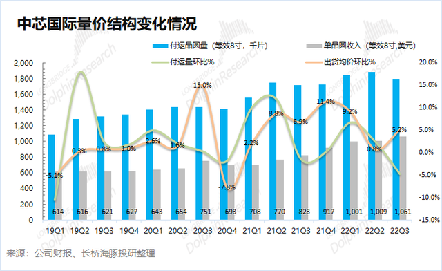 2)价的维度,中芯国际本季单晶圆收入(等效8寸)为1061美元,环比增长5.2%。