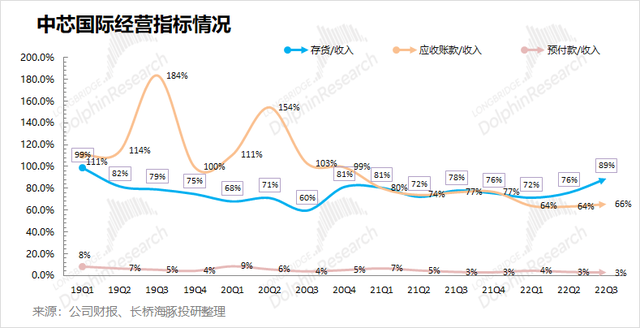 ③结合资产负债表中存货&应收账款和收入之间的关系,本季度存货/收入和应收账款/收入分别为89% 和66%。从营运指标的角度看,中芯国际的存货仍在继续走高,存货占比快接近历史高位。