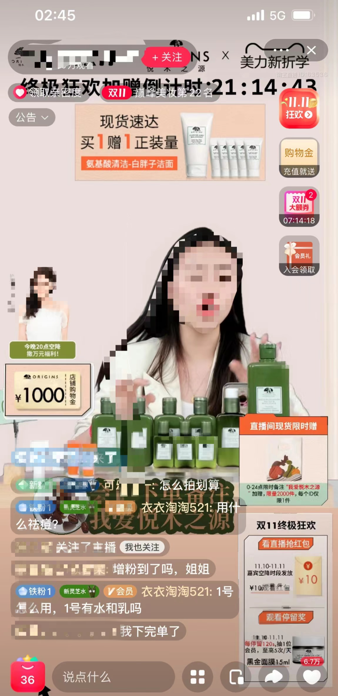这次“双11”,新新所在直播间从10月初做到11月初,已经出过两次促销活动,到了10日、11日,反而没有新的福利了。