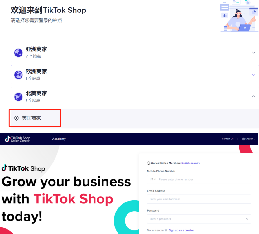 根据官网信息,注册美区小店需要使用美区手机号+邮箱或者用已有 TikTok 账户进行注册,同时商家需要拥有邀请码。