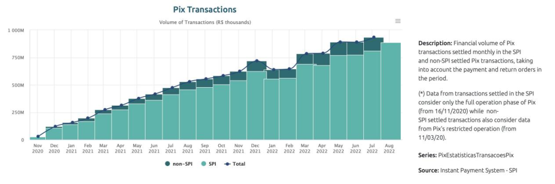 PIX 支付系统处理的交易金额变化情况 | 来源:SPI