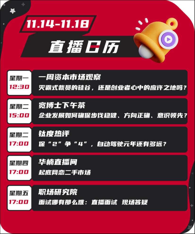 快来看看11月14日到11月18日这一周,钛媒体有什么精彩原创直播吧!