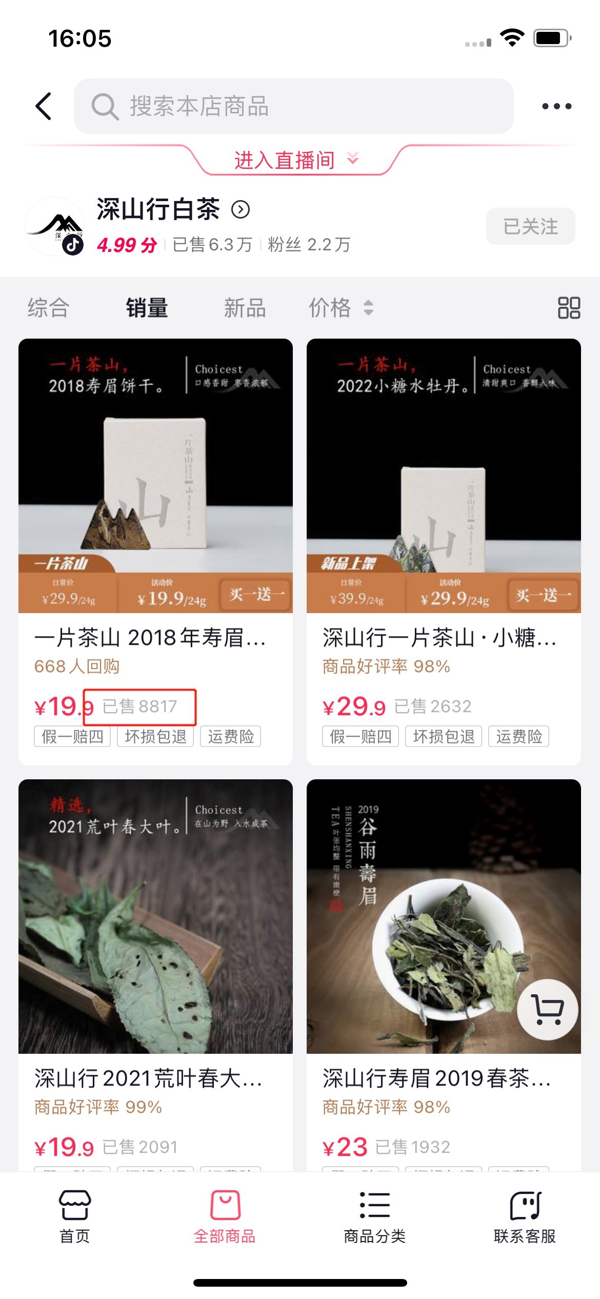 深山行白茶主理人陈臣说,本次双11自己在抖音平台上直播的销售量更好,大概1.6万单,是其他传统电商平台的10倍多,很大程度因为“货架商城”。