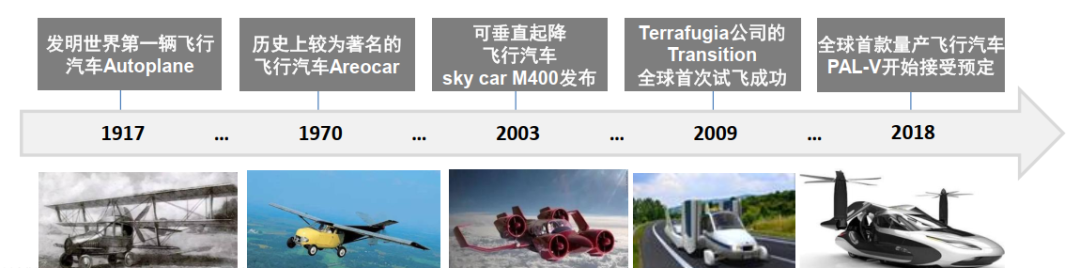 2017年,国内开始有部分创投媒体报道飞行汽车。
