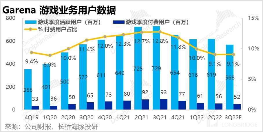 整体上 Garena 游戏板块延续了过去几个季度的趋势,无论是活跃用户、付费用户、游戏流水还是收入都仍在继续下滑,且下降幅度越发扩大,仍未止血。
