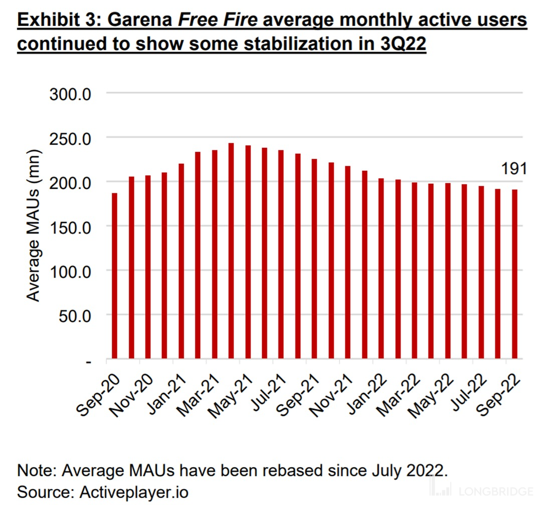 实际上根据第三方机构数据,Free Fire的月活跃用户数在今年三月后已基本企稳,这也是卖方预期用户会停止流失的原因。海豚君认为结果与预期不辅的可能原因是,Free Fire 外公司的其他主要游戏比如王者荣耀、使命召唤手游等也都已处在生命后期,大概率也同样在流失用户。同时,拳头已宣布 2023 年起将收回 Garena 王者荣耀的运营权,这对 Garena 的用户规模又会是个大打击。